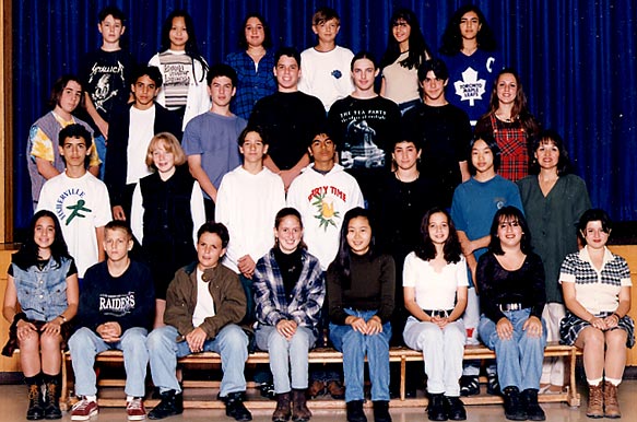 (E-Mail)(2/21/2001 9:37:47 PM) hehehe... WELL, we were all in science class and Marylena decided that she wanted to try on your blazer, so you gave it to her. Then she wanted to try your tie, so you gave that to her too... that's why you were slouching in the picture - YOU WERE STRIPPED! =)